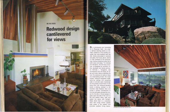 “Boldly articulated in redwood and glass the house seems in total command of its surroundings, having conquered a site that is both rocky and steep”